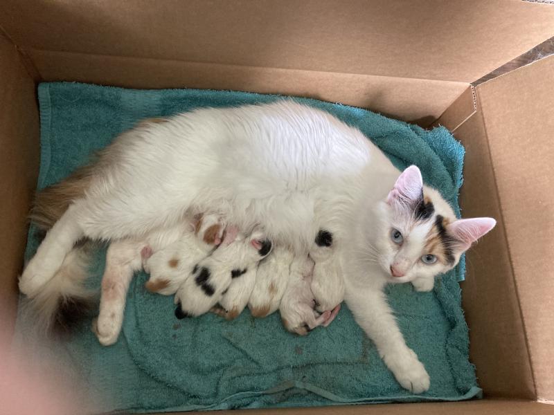 Tovah had a had a lovely litter of 3 torties and a red boy May 4, 21. They are all in their new homes.
