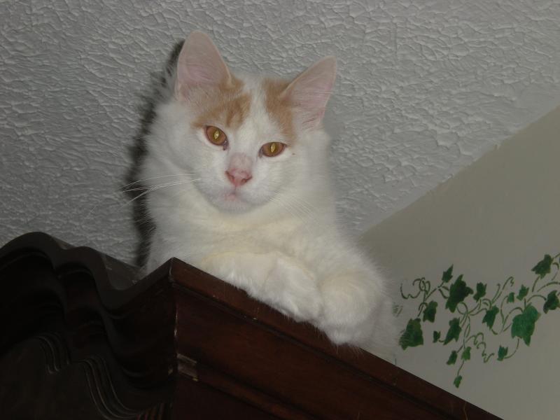 "Kermit" was 3rd best Turkish Van Internationally, a Supreme Grand Champion and a Regional Winner in the 2011-2012 year. He is a sweet tempered boy who loves to be held and sit on my shoulder. He loved going to the cat shows and now sires wonderful kittens.Tarek is a red and white son of Kermit and a current sire.